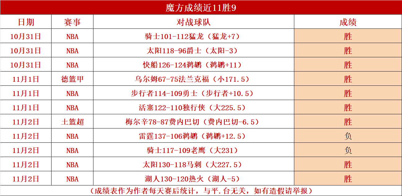 【成绩回顾】昨日三胜,目前成绩11胜9!今日针对德篮甲以及NBA赛事进行临界值数据深研。