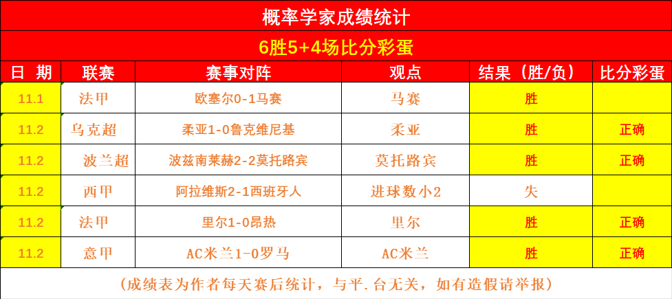 战绩回顾:6胜5+4场比分,状态相当理想。大家可以点点关注,建议不要单单挑选某一场比赛,某一篇文章,要留意概率送出的每一场比赛,这样就可以更好地与概率同步,可以长期取得正向的收获。