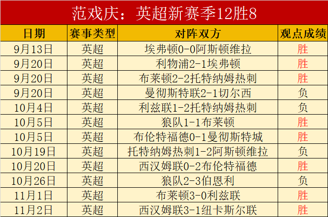 最近更新:2025-11-03 16:47 英超近7胜率71%近13中11