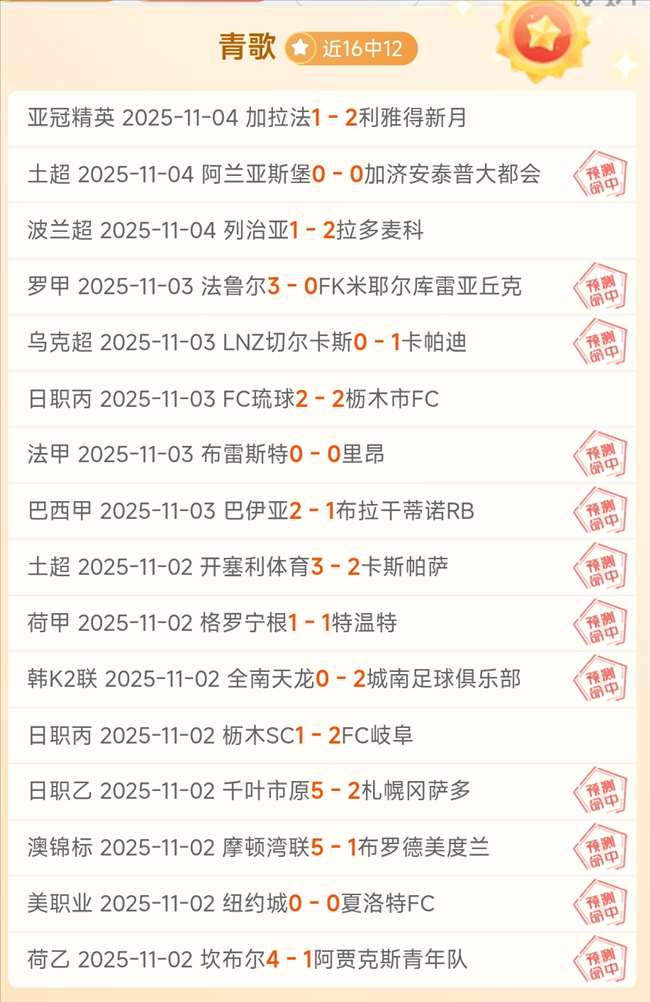 最近更新:2025-11-04 10:39 近18中13最长9连红