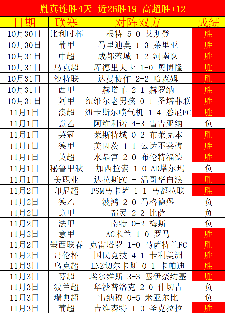 厄瓜甲2连胜,美洲赛事精彩度一直很高。胜利连续4天,近26场胜19场高超胜+12,胜+增长速度很精彩!