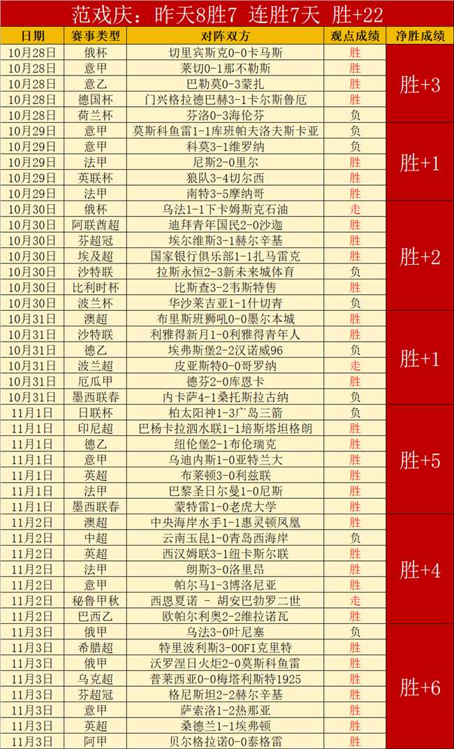 昨天8胜7,大胜发挥7天胜+22,近25天胜21天,合计胜+37,胜+表现尤其突出。9月15日打出10连胜,17连胜记录也是在近期出现的,大胜是频繁出现的高超实