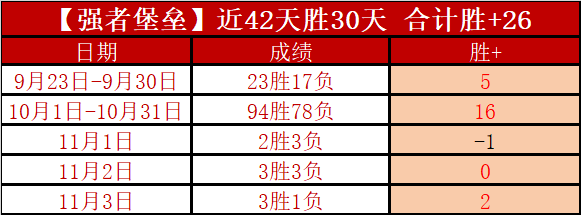昨天4胜3,18天胜13天胜+15,近42天胜30天胜+26,胜+表现很精彩