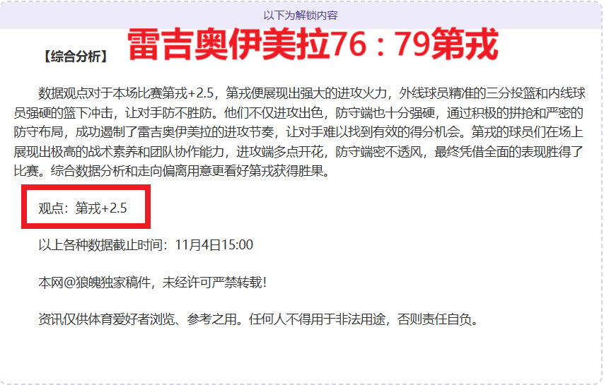 解锁内容包括:综合大数据分析+分解赛事走向+比赛建议+作者观点数据