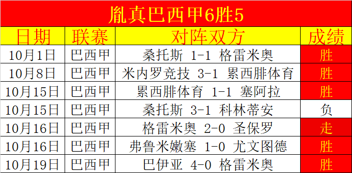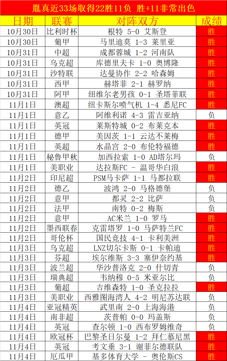 巴西甲6胜5,美洲赛事精彩度一直很高。近33场分析取得22胜11负,胜+11非常精彩!
