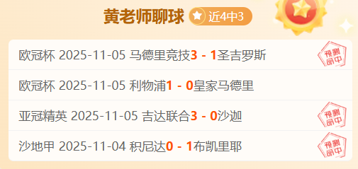 赛事回顾:昨日5胜3,其中欧冠马竞、亚冠精英吉达联合和沙地甲积尼达都拿下了比分!今日我们继续精挑细选,以稳为主,期待能够继续有不错的表现!