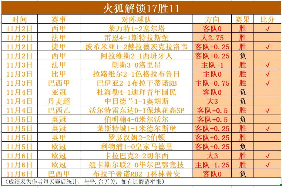 【小女子状态回顾】昨天火狐解锁送出的两场欧冠,比分和观点全都顺利打出!可惜巴西甲预测结果出现偏差,解锁17胜11,并连中9场比分!今天别忘了继续关注火狐的动态哦!