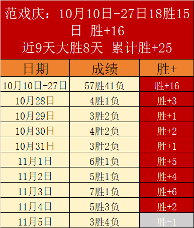 盈率1232%高居第一,近9天大胜8天胜+25,10月10日-27日18天胜15天胜+16,胜+表现尤其突出