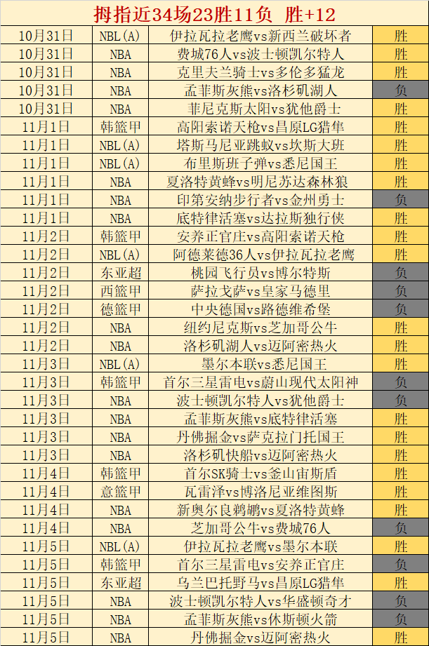 近34场23胜11负 胜+12,当前状态值得肯定的!