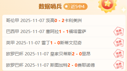 5红4,昨晚雷丁1-0,贝蒂斯2-0,斯图特2-0比分精确锁定; 早上让哥伦甲给断缆了实在有点不甘心;从宏观层面洞察独到见解,通过独创性体系,以全局思维配合"哨兵Spf模型"数据研判。周末状态稳步,本着高概率场所,而不是盲冲热点热门,专注心水稳定拿捏,是要高概率,不胡乱跟风;越是理智清醒的人,越知道概率的重要性,越依靠数据,越会尊重规律,理性的判断。带你深度解构数据商家的意图、才能持续跑胜数据变化!