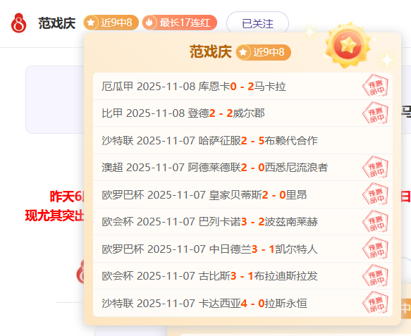 最近更新:2025-11-08 12:18 近9中8最长17连红
