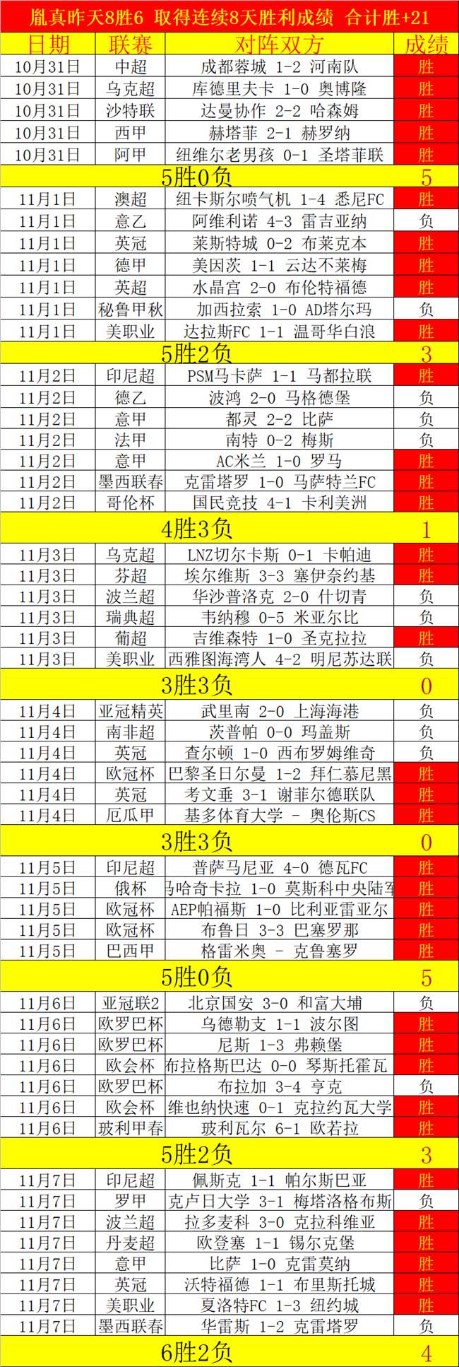 昨天6胜4,连续胜利合计胜+21,非常精彩的胜净表现!