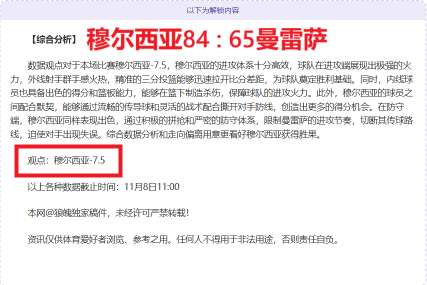 解锁内容包括:综合大数据分析+分解赛事走向+比赛建议+作者观点数据
