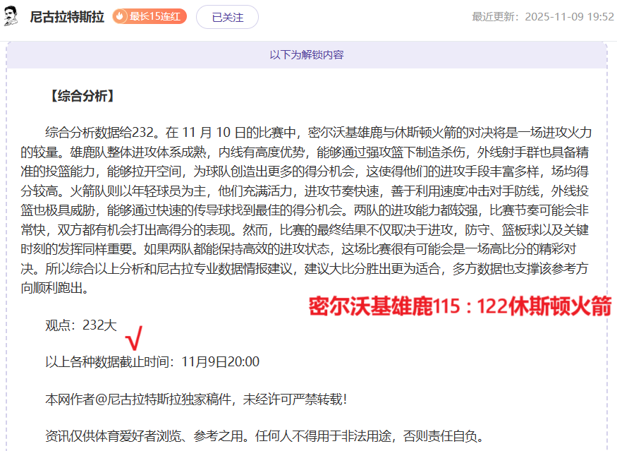 解锁内容包括:综合分析+比赛建议(数据观点+附加观点)