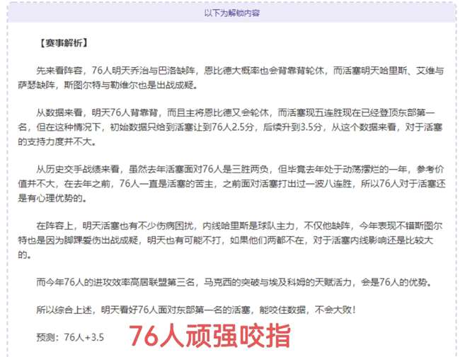 【昨天回顾】昨天NBA精选的勇士与76人成功打出,但魔术与篮网没有看准,公推的雄鹿也是被逆转。明天精选只聚焦两场,公推一场,宁缺毋滥力争打出胜绩!