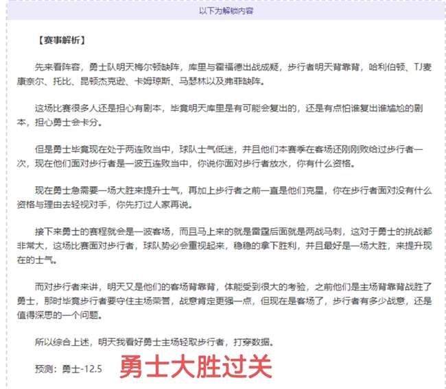 先来看阵容,魔术明天背靠背,萨克斯应该会轮休,而开拓者明天依旧是利拉德、亨德森、塞布尔缺阵。