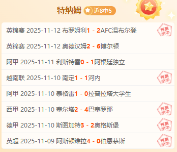 【战绩回顾】目前成绩近8胜5状态稳定。特纳姆将凭借多年深耕足球领域的专业视角,结合独家赛事分析方法,深度解析赛果走向。诚邀各位球迷朋友共同交流探讨,让我们携手冲击高效战绩!