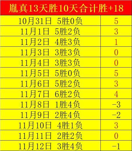 13天胜10天胜+18,傲视群雄的胜+表现!