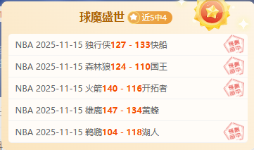 最近更新:2025-11-15 20:27 近5中4最长13连红