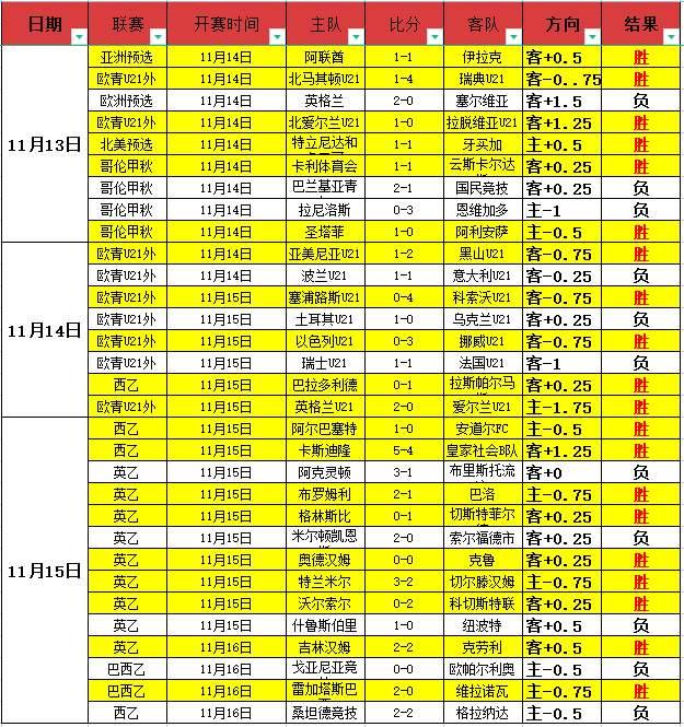 昨天表现出色,整体拿下14胜9净+4!昨天数据中,西乙的表现非常的不错,整体拿下3胜2,非常的给力!而英乙的表现也相当的亮眼,整体拿下9胜6,非常的优秀!巴西乙则是一胜一负表现平稳!