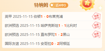 【战绩回顾】昨日3场赛事保持不败,胜2走1,目前3连胜。特纳姆将凭借多年深耕足球领域的专业视角,结合独家赛事分析方法,深度解析赛果走向。诚邀各位球迷朋友共同交流探讨,让我们携手冲击高效战绩!