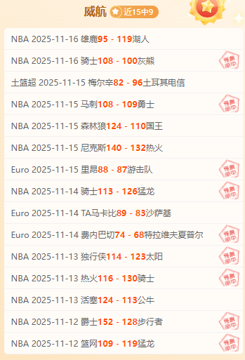 【成绩回顾】目前整体成绩15胜9。以下为大家分享一场NBA篮超赛事,鹈鹕vs勇士,敬请期待!