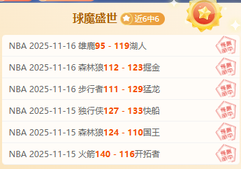 最近更新:2025-11-16 19:44 6连胜最长13连红