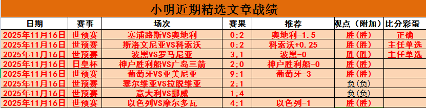 【上期回顾】稳!稳!稳!昨精选5胜3,神户+以色列+葡萄牙全部打出,近8胜6。昨天还行,精选净增1场;周末2天净增4场发挥不错。周一没什么比赛,精选只打1场,大家也好好休息休息。