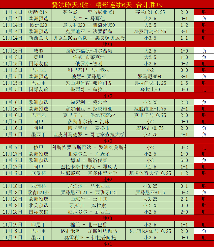 昨天3胜2,6天连续精彩胜+8,又开始启动精彩啦。