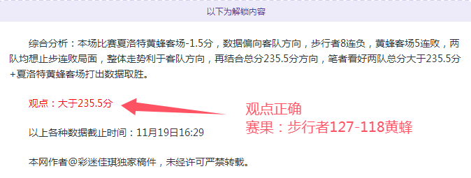 昨日NBA赛事,步行者主场127-118黄蜂,观点顺利打出。