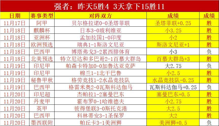 昨天5胜4,3天15胜11胜+7,当前状态非常良好。十月月成绩胜+16,双位胜+十分吸引眼球