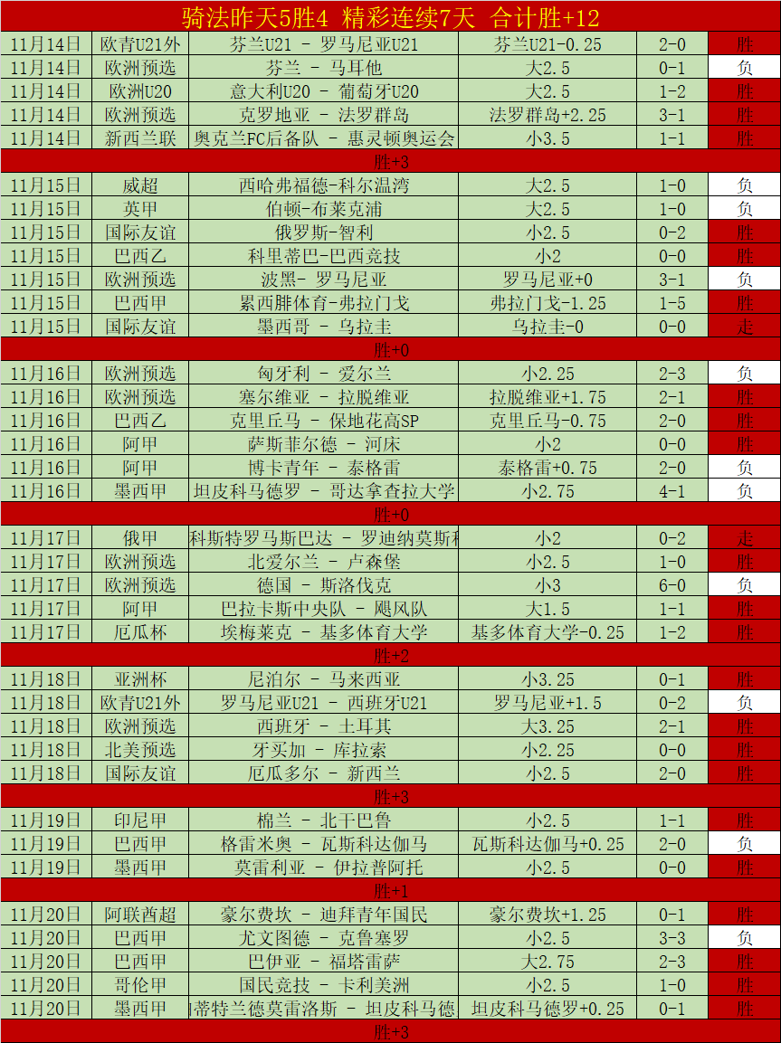 昨天5胜4,7天连续精彩胜+12,又到了狂飙胜+的时候。