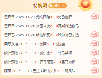 【战绩回顾】近期获得了7胜6。特纳姆将凭借多年深耕足球领域的专业视角,结合独家赛事分析方法,深度解析赛果走向。诚邀各位球迷朋友共同交流探讨,让我们携手冲击高效战绩!