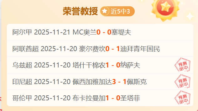 昨天5失2!最高打下14连胜的表现已见证实力。今天继续奉上强项赛事系列,各线赛事都能保证清晰的解读思路与靠谱的选择方向!截至昨天荣誉教授已经有4260场解读经验,今天继续精选5场,多元化的赛事系列,以更高连胜胜利率绩迎接5000场记录来临,关注荣誉教授,成为荣誉教授的好伙伴!