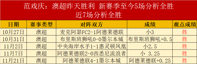 澳超新赛季5场分析全胜发挥,延续上赛季的话已经澳超7连胜了。近6天保持精彩胜+5,10月10-31日合计胜+23,11月1-15日合计胜+28,这样的胜+表现肯定是独占鳌头的