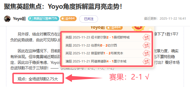 【上期回顾】:昨天公推英超切尔西轻松拿下,而超级重点英超方案多进球同样一波流击出,连胜的步伐又开启!——今天核心赛事已确认,信心依旧,各位可点击一下【赞赏】按钮给予鼓励,轻松在“站内信”获取当天新鲜信心专场哦!多一份参考离喜悦再近一步,Yoyo将继续率粉粉们继续前行~