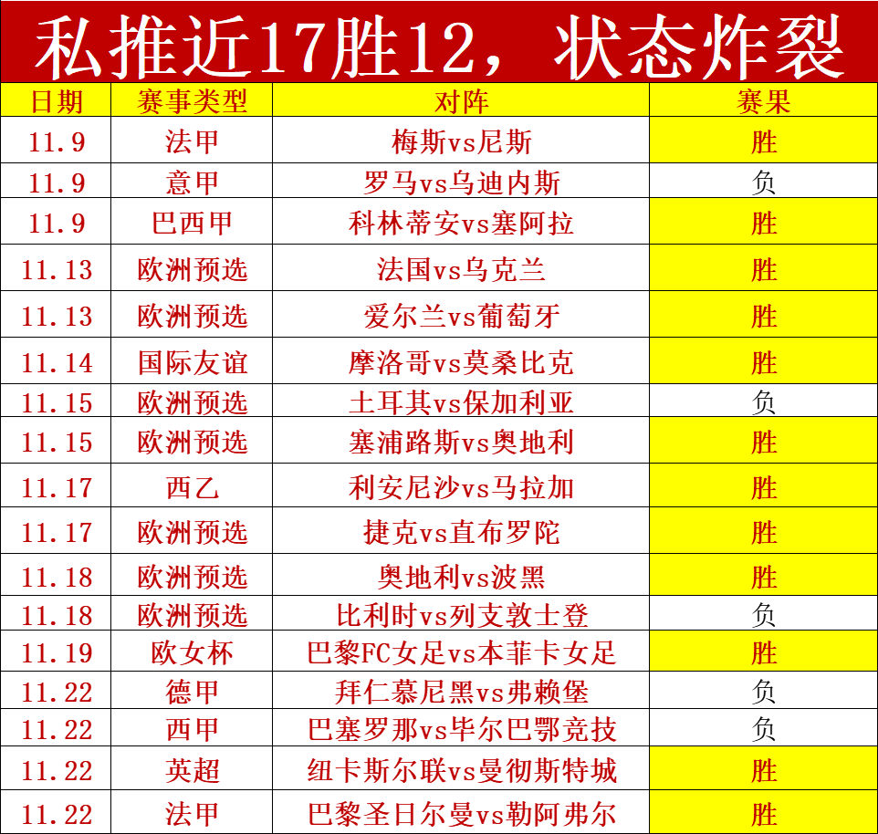 一、战绩回顾:昨天早场亚系十分炸裂,澳超+中超连续5场不败,特别是澳超,再次顺利拿下,澳超目前3连胜,4连不败,私推保持稳定,私推近17胜12。