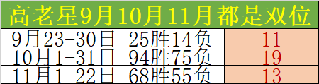 3天连续精彩合计+6,9月胜+11,10月胜+19,11月截至昨天胜+13,每个月都双位胜+精彩