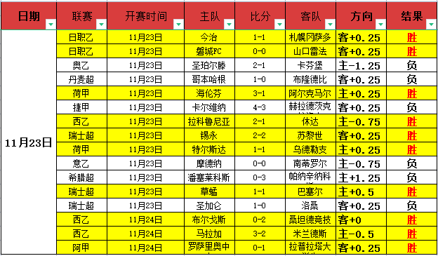 昨天表现出色,整体拿下16胜10净+4!昨天数据中,日职的表现非常的炸裂,2场都完美的大胜拿下,非常的精彩!荷甲、西乙和阿甲的表现都非常的炸,都完美的打出,非常的给力!