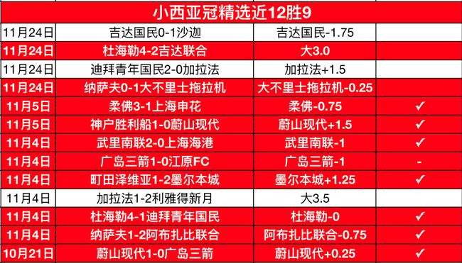 战绩回顾:昨日精选的比赛是中规中矩,是取得了3胜3负的成绩,今天的比赛质量还是相当不错的,将选出一场质量不俗的亚冠比赛,加油,冲!