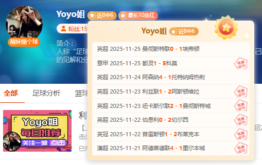 【上期回顾】:昨天私推西甲西班牙人2-1稳稳胜出,而公推意甲科莫多进球豪取四连胜,可惜超级重点英超方案失利,但无碍近况整体出色呀!——今天核心赛事已确认,信心依旧,各位可点击一下【赞赏】按钮给予鼓励,轻松在“站内信”获取当天新鲜信心专场哦!多一份参考离喜悦再近一步,Yoyo将继续率粉粉们继续前行~