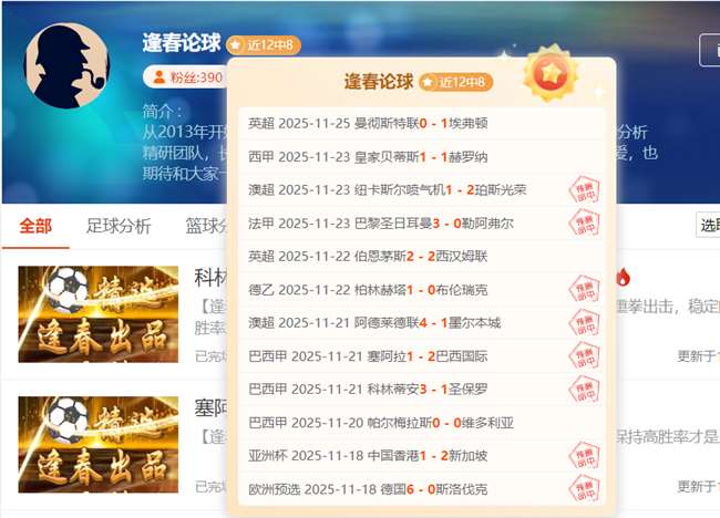 【本人介绍】逢春论球本名朱逢春,早年担任足球解说员,从2013年正式入职足球分析师-对亚欧数据的变化套路了如指掌。2018年俄罗斯世界杯更是2次拿下任14(一奖),2023年欧洲杯拿下23连红的傲人战绩。抓冷门技术更是一把好手,最近两年更是凭借一手独家的四维彩超数据分析将胜率再拔新高。逢春自2025年初有幸加入本网以来本着细心分析、诚心创作,内容全面的原则,为大家带来更精彩的足球!