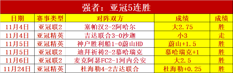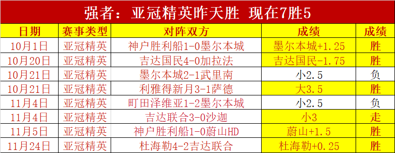 亚冠精英昨天胜利,亚冠精英目前7胜5,亚冠赛事取得5连胜,继续展现出亚系赛事的强大分析实力。昨天8胜6,大胜3天合计23胜16,近43场胜29场胜+15。十月月成绩胜+16,双位胜+十分吸引眼球