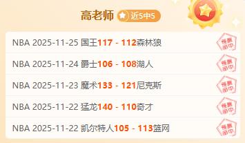 【赛事回顾】上期分享的NBA赛事国王对阵森林狼,结果高老师参考的国王方向成功打出,近期取得了5连胜,状态火热。