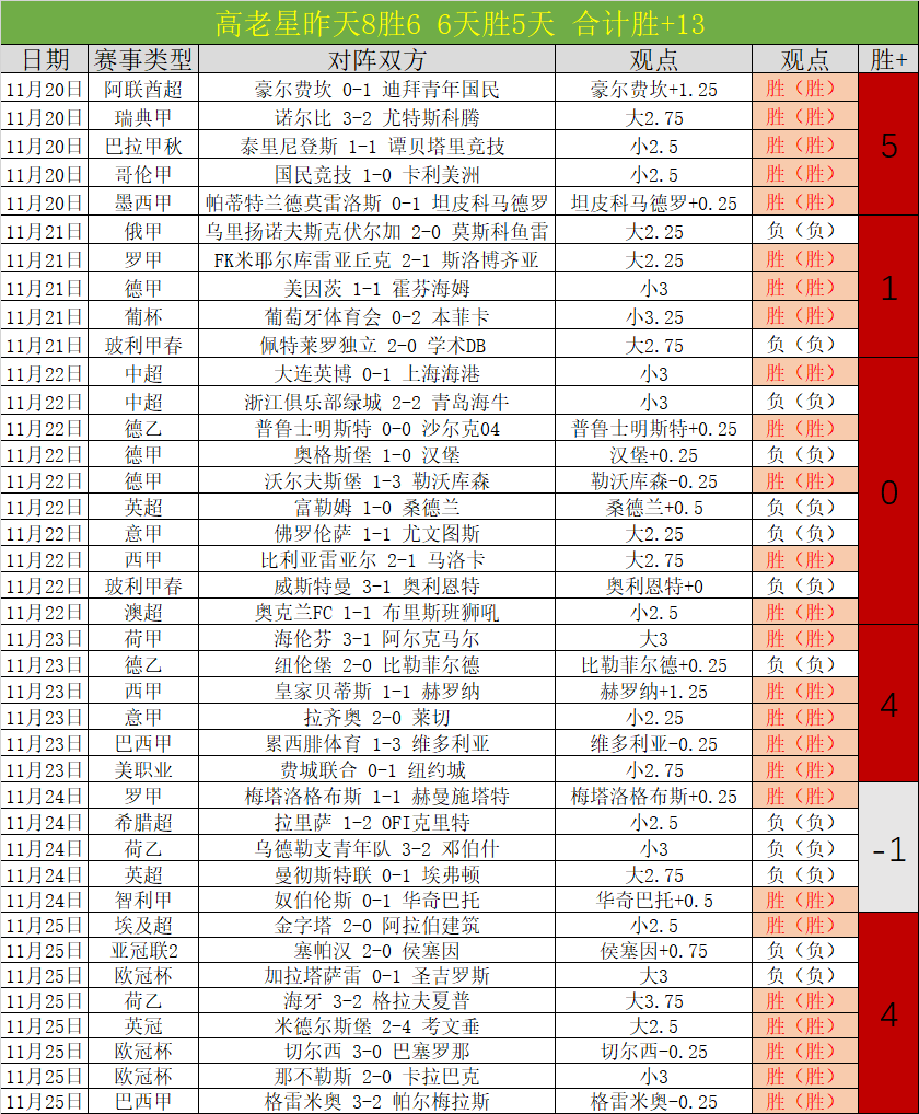 昨天8胜6,近6天胜5天胜+13,11月截至昨天胜+19,9月胜+11,10月胜+19,连续3月双位胜增长