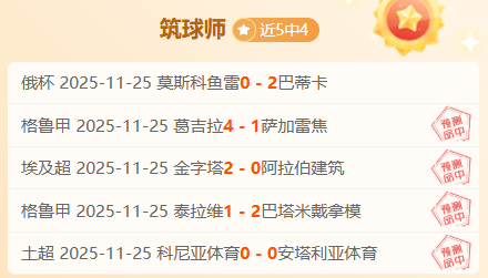 成绩回顾:近5中4!状态十分火热;今天笔者继续秉承宁缺毋滥的精神,只推有质量有信心的比赛而不是数量搭够,确保每一场比赛都有命中率的;今天笔者同样挑选出信心场次,望大伙们可以一起与筑球师研究胜利的观点。