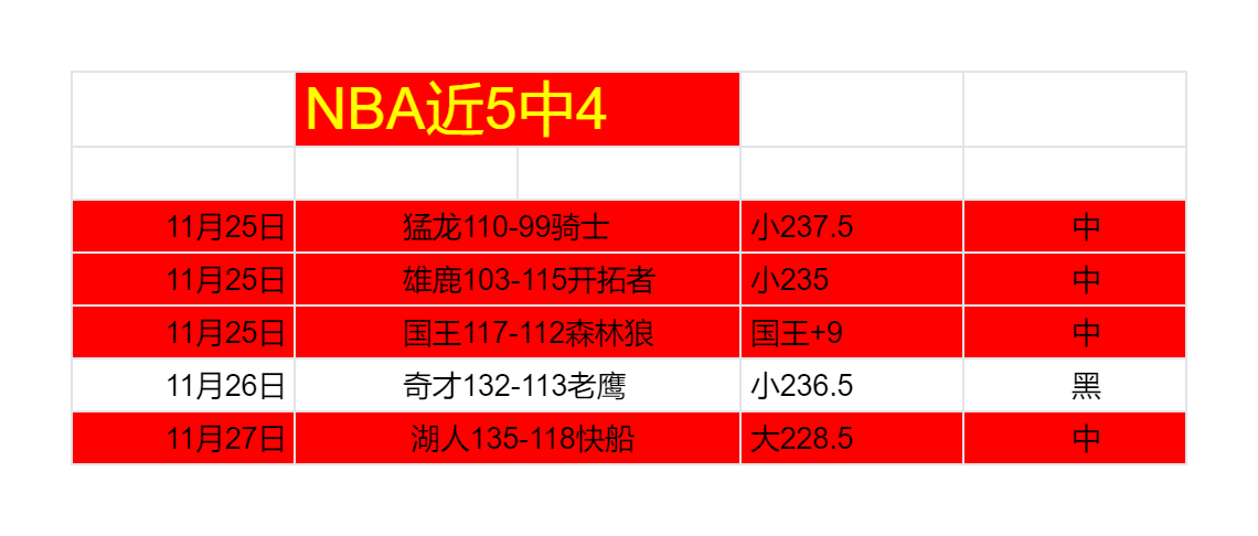 稳定NBA,近两天5中4.还算可以,走的长期稳定路线,一两天不算什么,共同进步 。