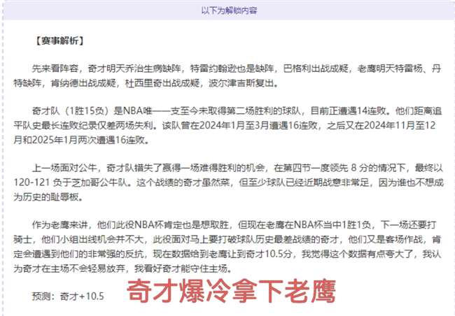 【昨天回顾】昨天NBA两场精选奇才与魔术成功打出,但公推的快船看走眼,但好在包周临场看好奇才与老鹰的大格局拿下了,整体四胜三,表现还是能交差的。明天比赛比较多,咱们还是做好功课,争取延续胜场!