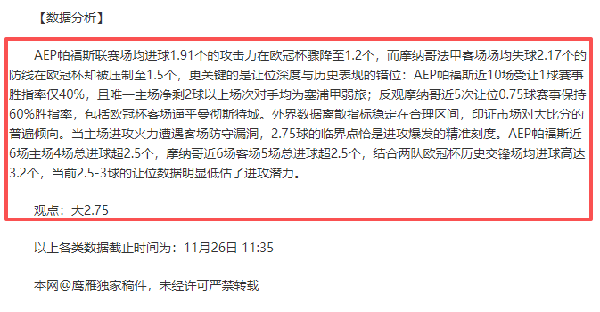 成绩回顾:昨日拿下一场欧冠杯赛事,近8场欧冠杯胜率达75%。感谢一直以来的支持与陪伴,今天看好不错的赛事,强项赛事很有信心,鹰雁也曾创下19连胜的超高记录。愿大家在观赛的同时,也能收获满满的喜悦与惊喜,觉得还行的不妨继续关注,一起开启精彩的足球之旅。