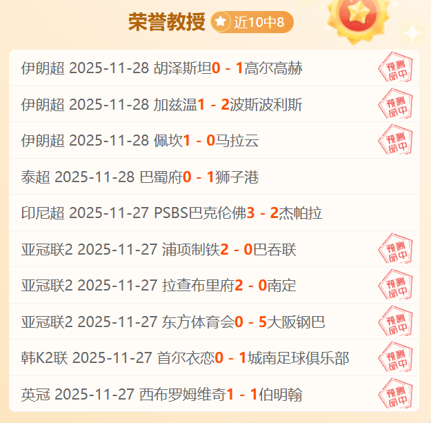 昨天3连胜,连胜3天,拿下10胜8!西甲9胜7!最高打下14连胜的表现已见证实力。今天继续奉上强项赛事系列,各线赛事都能保证清晰的解读思路与靠谱的选择方向!截至昨天荣誉教授已经有4300场解读经验,今天继续精选5场,多元化的赛事系列,以更高连胜胜利率绩迎接5000场记录来临,关注荣誉教授,成为荣誉教授的好伙伴!